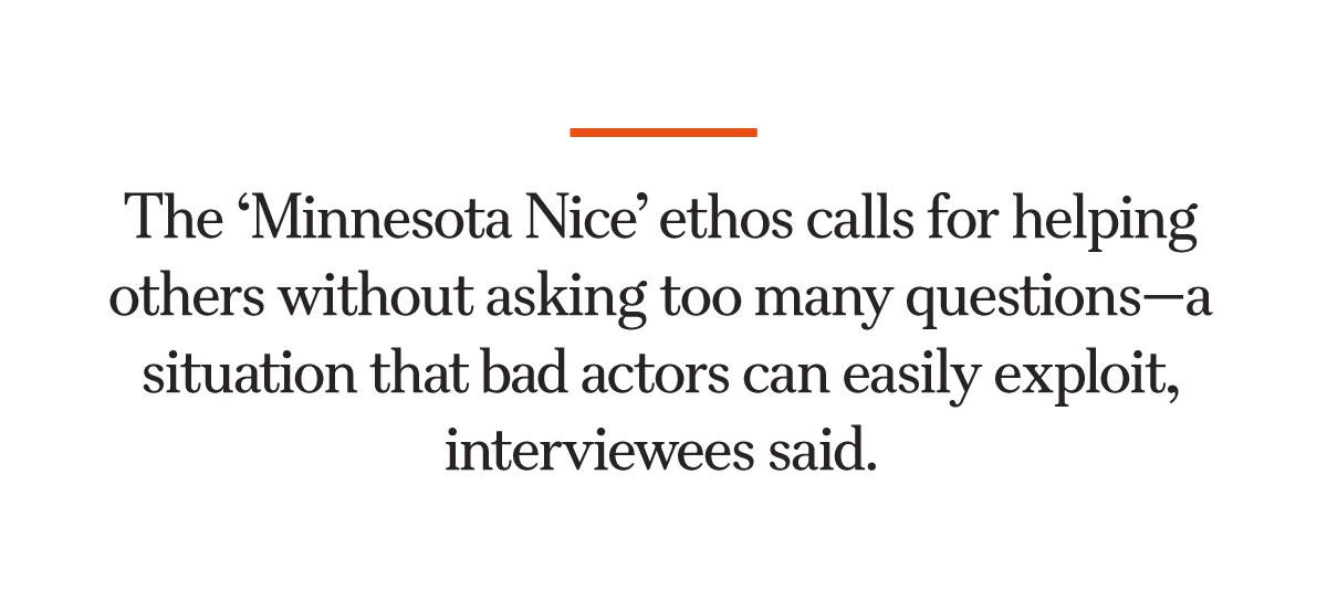 Marketed as the “Land of 10,000 Lakes,” Minnesota has long touted its natural beauty, networks of parks, and the friendly-yet-reserved attitude of its people.That “Minnesota Nice” ethos calls for helping others without asking too many questions, a situation that bad actors can easily exploit, interviewees told The Epoch Times.