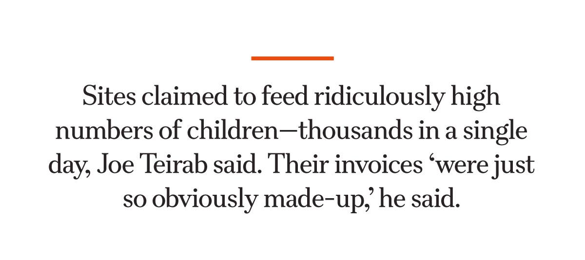 Sites claimed to feed ridiculously high numbers of children, he said, thousands in a single day. Their invoices “were just so obviously made-up,” he said.