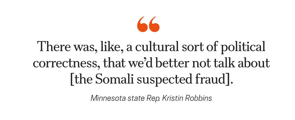 Hudson serves on an anti-fraud committee that is digging for answers. Its chair, state Rep. Kristin Robbins, a Republican, said she has spoken to multiple whistleblowers “who said they were told not to say anything [about Somalis’ suspected fraud] because that would be ‘racist’ or ‘Islamophobic.’”“There was, like, a cultural sort of political correctness [suggesting] that we'd better not talk about it,” she told The Epoch Times. “And that’s why it was allowed to balloon and mushroom out of control.”