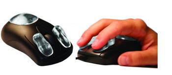 The PADandCLICK computer mouse accessories allow users to place gel pads on their mouse buttons, and a gel pad where the wrist rests. Courtesy of Jacob-Innovations