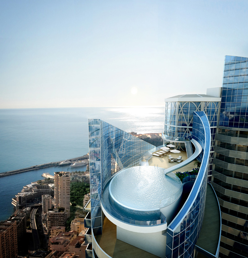 NEW YORK—A penthouse in Monaco is set to redefine luxury and become the world’s most expensive when it goes on sale next year. It will occupy five floors atop Tour Odeon, a 49-floor, twin-tower luxury project that will become Monaco’s tallest building upon completion. The penthouse features an enormous rooftop pool with a water-slide and floor-to-ceiling windows with panoramic views.
