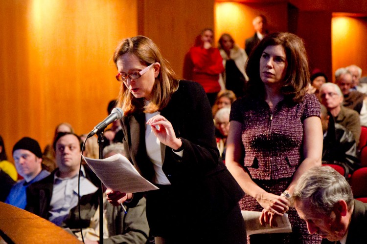 In a theater-style classroom at the Borough of Manhattan Community College on Chambers Street hundreds filled the seats for the last hearing at 6 p.m.
