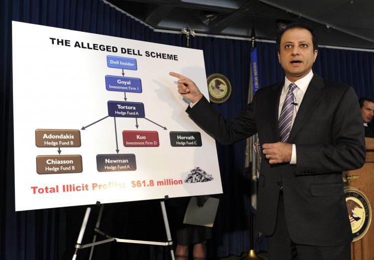 “They show that insider trading activity in recent times has, indeed, been rampant and routine and that this criminal behavior was known, encouraged, and exploited by authority figures in several investment funds,” U.S. Attorney Preet Bharara said at a press conference in New York.