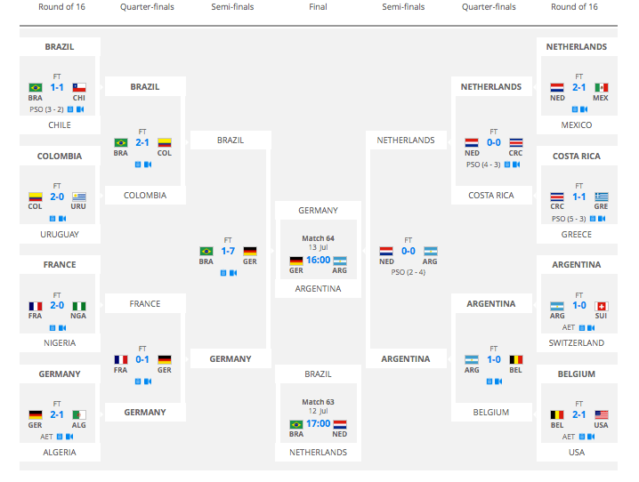Germany beat Brazil 7-1, and Argentina beat the Netherlands 4-2 on penalties.