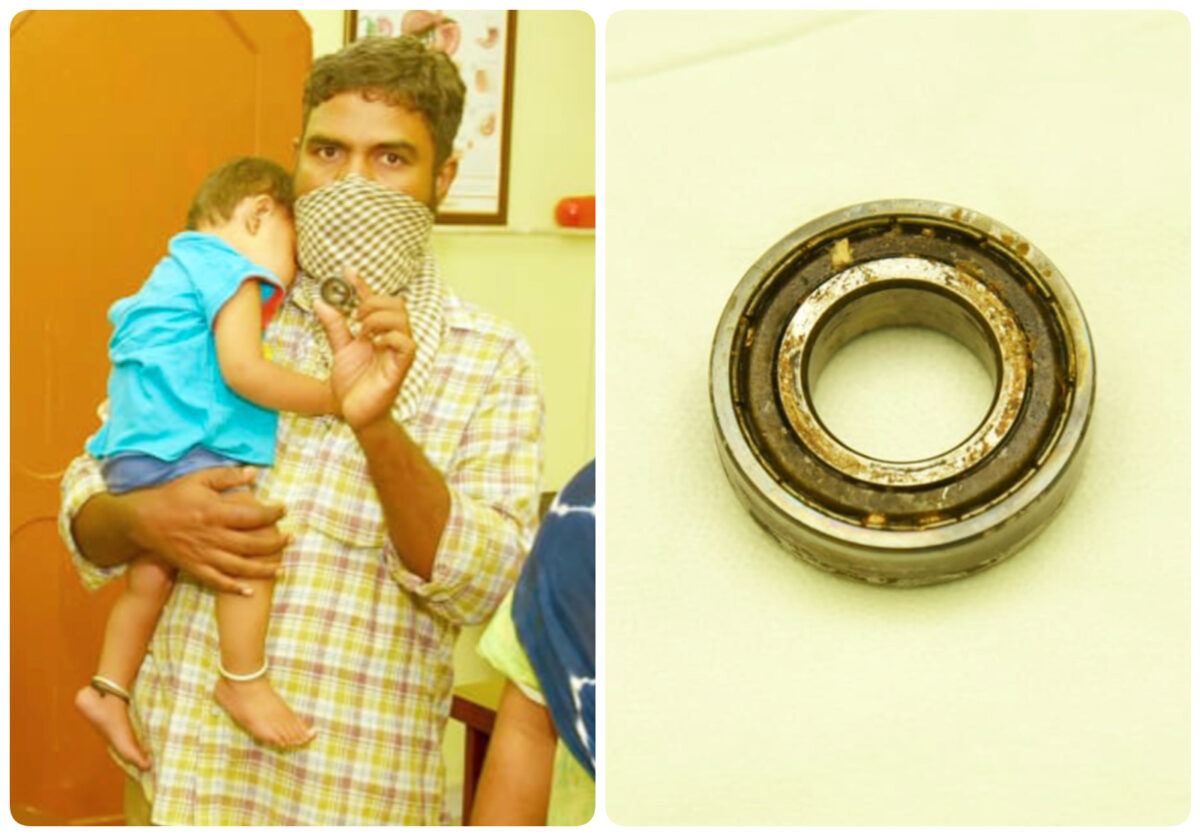 The doctors performed emergency life-saving surgery to remove the metal bearing stuck in the baby’s food pipe. The medics called the incident “very dangerous.”