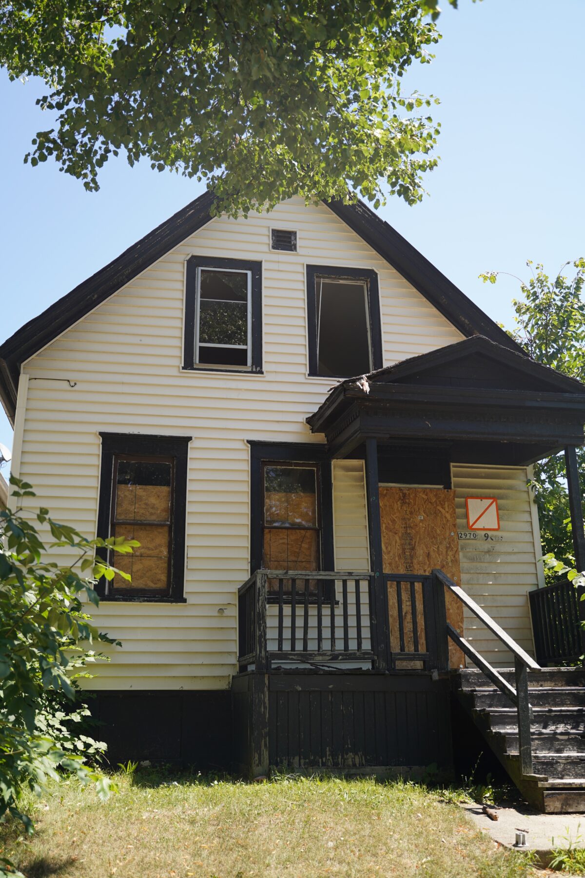 It’s not the poorest neighborhood, but the signs of distress are clear. Once a middle-class neighborhood, its streets are lined with single-family homes. Many are badly damaged, boarded up, or covered in paint that’s chipped and peeling.