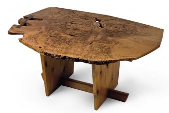 A table by Nakashima, a contemporary designer that reveres natural form and the beauty of wood figurations. Courtesy of Christie's