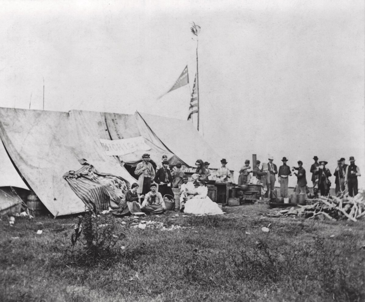 Many Chinese immigrants came to the United States during the California Gold Rush, drawn by the promise of gold. They eventually became a significant source of labor for the developing economy of the West, initially working in mines before shifting to industries like agriculture, factory production, and the construction of the transcontinental railroad. This image depicts a group of white and Chinese gold miners operating a sluice box at Auburn Ravine, Calif., in 1852. (Fotosearch/Getty Images)