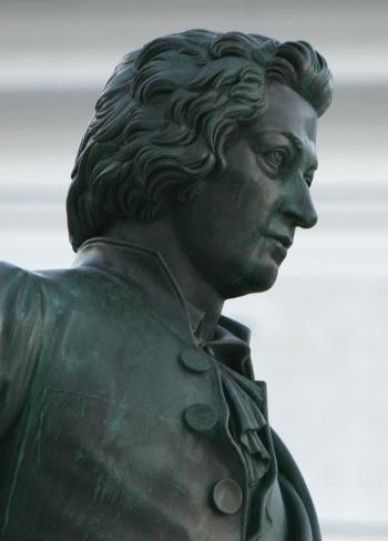 Close-up of the statue of Wolfgang Amadeus Mozart taken in Salzburg, Austria, on Jan. 26, 2006—the day before the 250th anniversary of Wolfgang Amadeus Mozart`s birth in Salzburg, the place of his first musical success. Joe Klamar/AFP/Getty Images