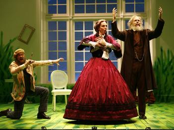 VICTORIAN ARTISTS: (L-R) Painter George Frederick Watts (Barney O`Hanlon), photographer Julia Margaret Cameron (Ellen Lauren), and poet Alfred Lord Tennyson (Stephen Duff Webber) in Virginia Woolf’s comedy about the artists preceding her generation in � Carol Rosegg
