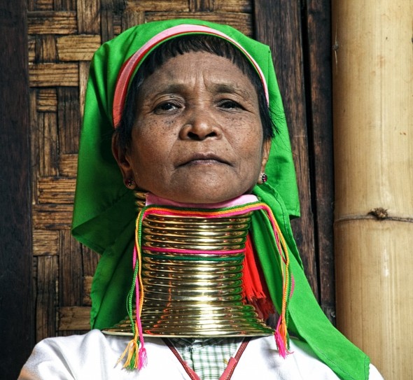 At one sprawling tourist shop, two women from the Padaung tribe, their necks hidden by large, coiled gold rings that can weigh up to l5 pounds, posed obligingly for camera-toting tourists. At first, I was appalled at the sideshow-like setup, but when I discussed it with Turin, he questioned the older of the two women, who said she was glad to have work and income.