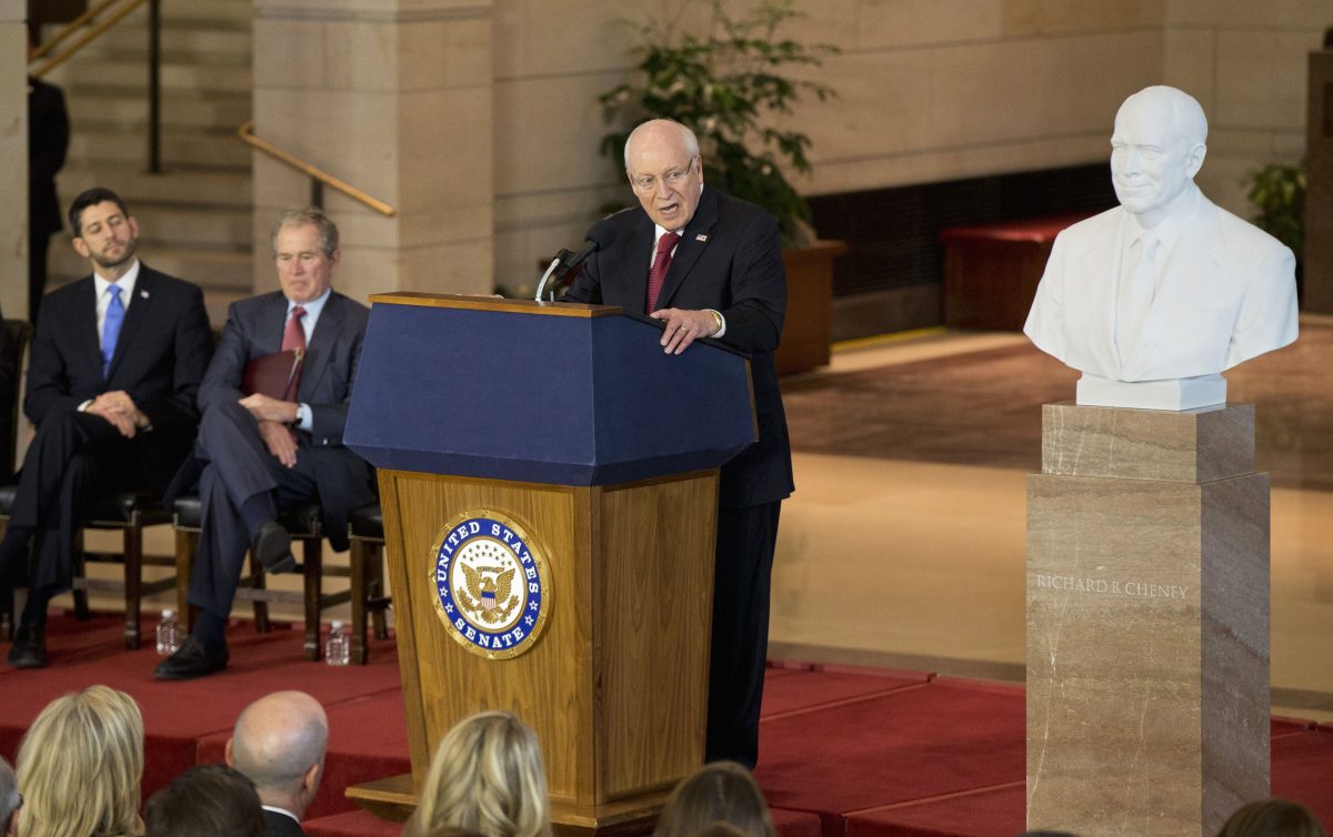 It came at a moment of political turmoil and frightening security threats, and as Bush’s younger brother Jeb lags in the 2016 presidential race. None of those pressures was evident in Emancipation Hall as Cheney’s wife Lynne, and many grandchildren watched on.
