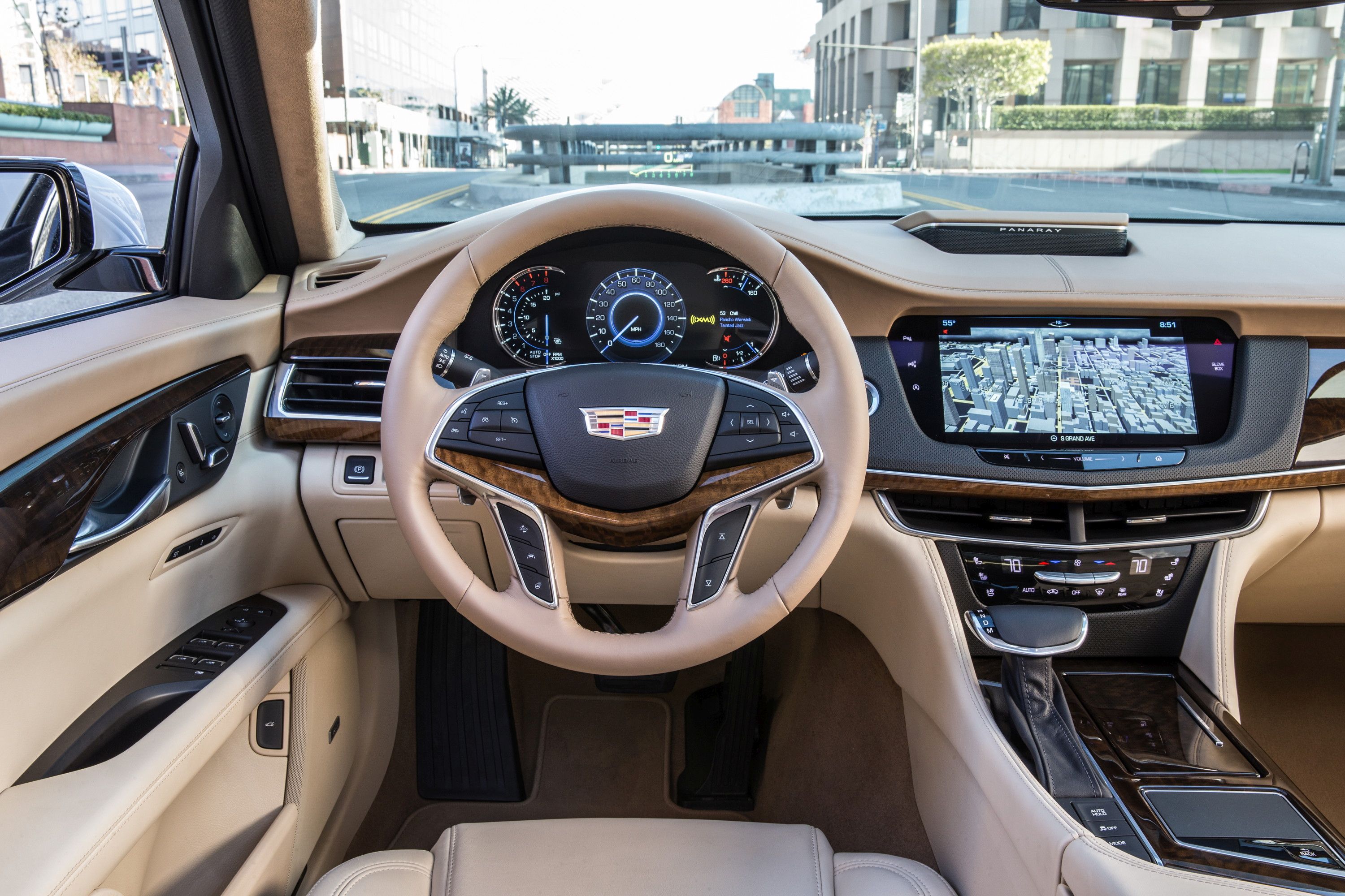 These days, to meet the demand and expectations of consumers, Cadillac has seen fit to offer an audiophile experience sure to enamour any aural experience. The base entertainment system is the perfectly adequate 10-speaker Bose audio system. The Bose-engineered Panaray top-tier audio system is an added benefit in the Cadillac’s Platinum-trimmed cars. The name, Panaray is a word combining “panoramic” and “array,” a reflection of the overriding sound-design goal as well as the actual speaker technology used. Panaray in the CT6 uses four Class D amplifiers to drive 34 speakers positioned in 19 locations throughout the car, and it’s controlled by the same CUE infotainment interface that operates the audio system in any other Cadillac.