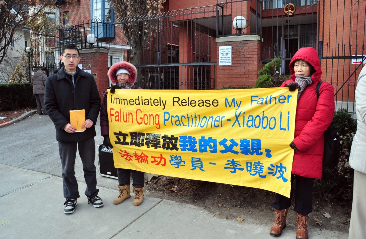 Li Zhe led a rally in front of the Chinese consulate in Toronto on Dec. 19, appealing to Chinese leader Xi Jinping to aid in his father’s release as well as give justice to Falun Gong.