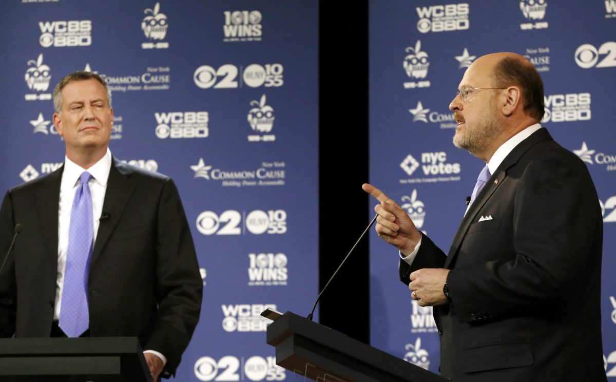 De Blasio attacked Lhota for a controversial ad, claiming, if elected, de Blasio would return New York City to the crime-ridden days of the ’70s and ’80s.