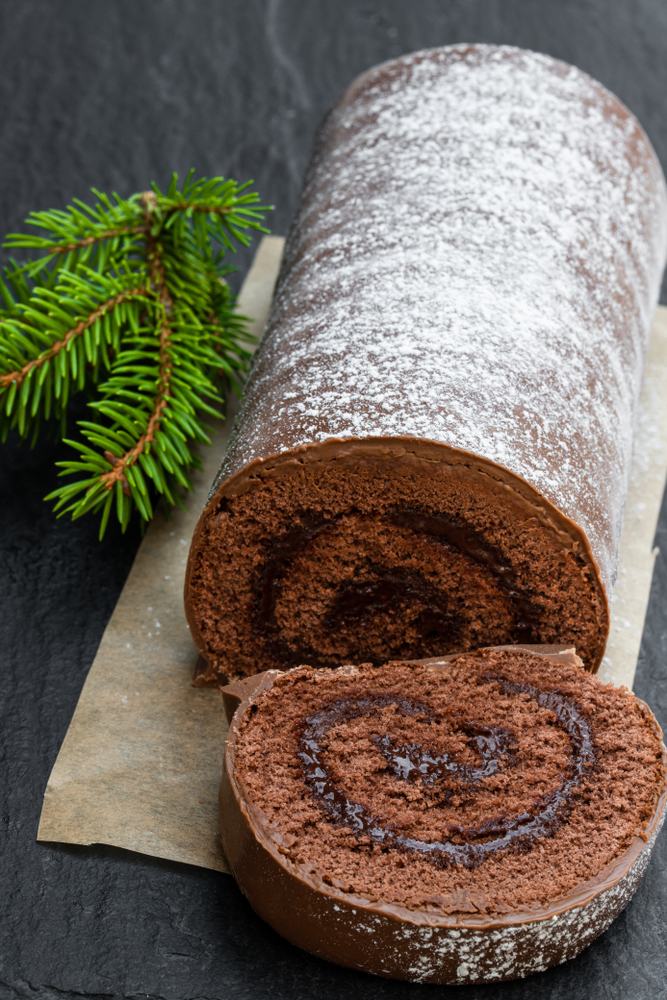 The dessert that crowns the meal is the “bûche de Noël,” or Yule log cake, whose origin dates back prior to the Industrial Revolution. Consisting of a sponge cake rolled with frosting to mimic the bark of a tree, the log cake allows for a great deal of creativity—many bakeries go all out to make eye-catching ones with meringue mushrooms, marzipan holly, and other edible decorations.