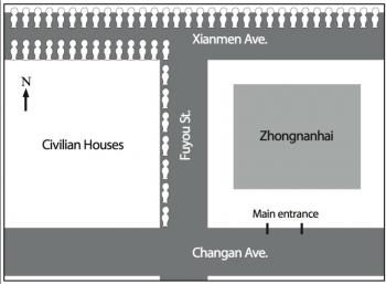 “The CCP report said we had 10,000 practitioners surrounding Zhongnanhai,” recalls Gao, who adds that the accusations meant to convey aggression on the part of the petitioners were false. “We were not at or near Zhongnanhai, we were lining Fuyou Street.” The well-known street is to the southwest of the compound they were accused of surrounding.