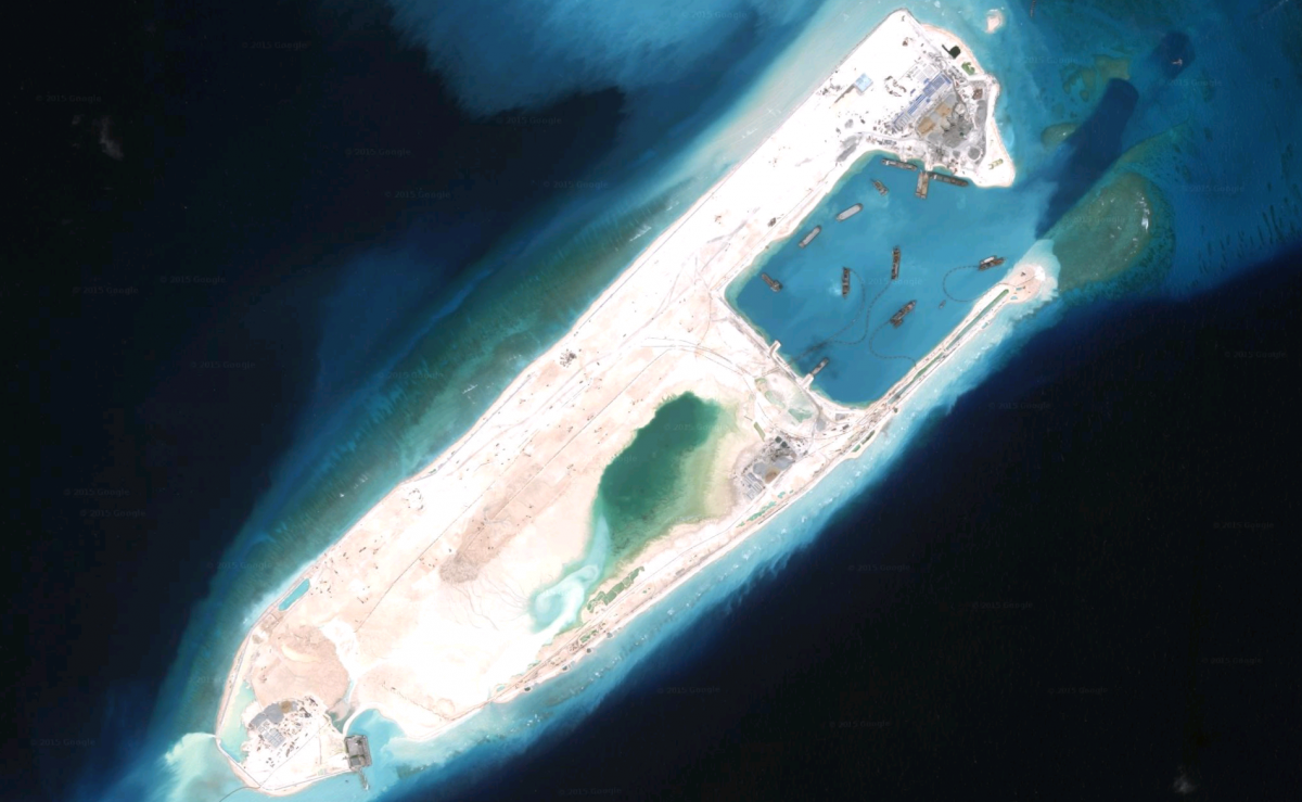 It does this by using ships to pump sand and mud from the ocean floor to build new islands. Then, it builds runways, military barracks, and surveillance equipment atop them.