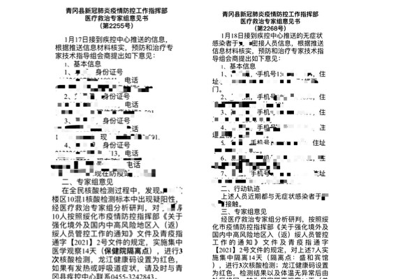 They listed the personal information of 10 people who were tested for COVID-19, including their full names, ID numbers, home addresses, and phone numbers; and the personal information of seven people who were close contacts of confirmed COVID-19 patients.