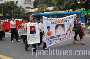 On April 15, over 30 parents of missing children staged a march in Dongguan City of Guangdong Province to call for the authorities to take action on finding the city’s over 1,000 children that have disappeared over the recent past few years. The local police dispersed the crowd and wounded some demonstrators.