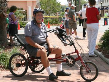 Blaine Van Munn rides his recumbent all over Winter Haven and the surrounding area. (James Fish/The Epoch Times)The rider on the far left grimaces as he strives to push himself harder, to pass the riders ahead. (James Fish/The Epoch Times)This series of photos show what can happen when riding at the limit; hapilly this rider was able to get right back up and continue. (James Fish/The Epoch Times)Hitting pavement at 30 mph is most obviously not a pleasant experience. (James Fish/The Epoch Times)Concerned fans urge him to stay still, but the rider is determined to press on. (James Fish/The Epoch Times)After crashing at 30 mph, the rider's first thought is to check his bike. (James Fish/The Epoch Times)The event was blessed with perfect weather. The morning was almost cool, and in the afternoon, light cloud cover took the edge off the sun. The day was warm, but never got hot, and a gentle breeze offered refreshment.
