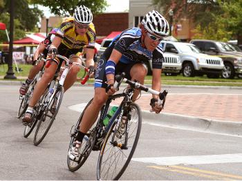 Circling the downtown streets at 30 miles per hour while riding only inches apart, riders in the criterium presented the excitement of competition and the spectacle of human endeavor, as they battled their own limits as well as the competition.