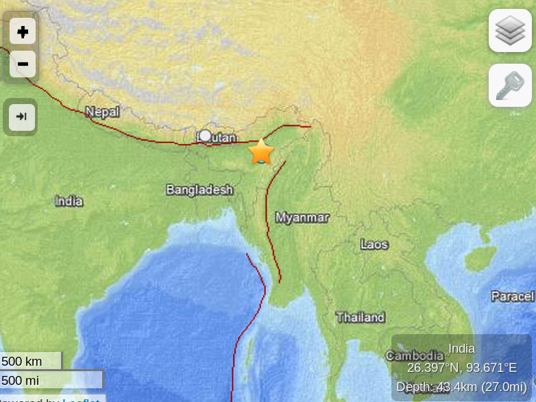 The quake hit around 15 miles from Barpathar, 16 miles from Silapathar, and 27 miles from Bokajan, said the US Geological Survey.