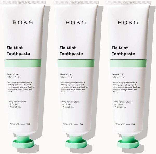 Transform your oral care routine with Boka Ela Mint Toothpaste. Harnessing the power of nano-hydroxyapatite (n-Ha), this fluoride-free formula remineralizes and whitens your teeth while promoting gum health. Perfect for sensitive teeth, it offers a gentle yet effective clean, leaving your mouth feeling fresh and revitalized. Free from SLS, parabens, and artificial flavors, it’s 100% biocompatible and safe for daily use. The delightful fusion of mint, green tea, and cardamom ensures a refreshing brushing experience. Embrace healthier, brighter teeth with a toothpaste that dentists trust and recommend. Try Boka Ela Mint Toothpaste today for a revolutionary approach to dental care.