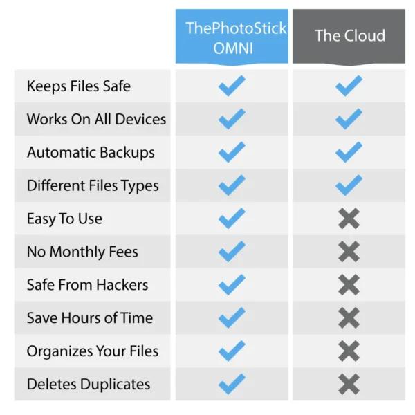 Now that ThePhotoStick OMNI exists, everyone — regardless of their tech-savviness — has an easy way to back up all your most important photos, videos, documents and more.If you have precious files saved on your computer OR your phone, and you haven’t backed them up — or you’ve only backed them up to the cloud — then you’re going to love the peace of mind ThePhotoStick OMNI will give you.