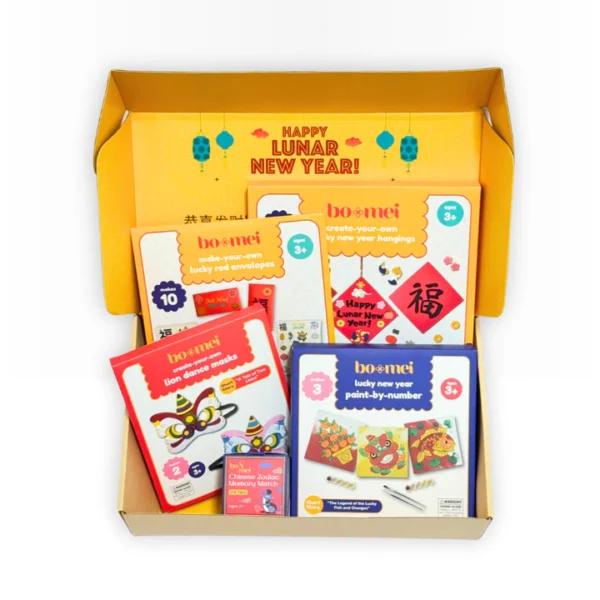 The Bo & Mei Happiness Box is a delightful blend of creativity and culture for kids aged 2-10. Inside, find activities like crafting Lion Dance Masks, personalizing Lucky Red Envelopes, painting good luck symbols, making festive hangings, and a Zodiac Memory Match Game. Each project not only entertains but also educates about the rich traditions of the holiday, making this box a joyful gift for family celebrations.