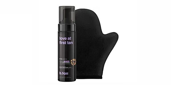 The b.tan self-tanner kit features a violet-based express mousse and a reusable mitt for easy, streak-free application. It develops in 1–4 hours for a natural or deeper tan without orange tones. Infused with hydrating oils, the formula is vegan, cruelty-free, and made in the USA.