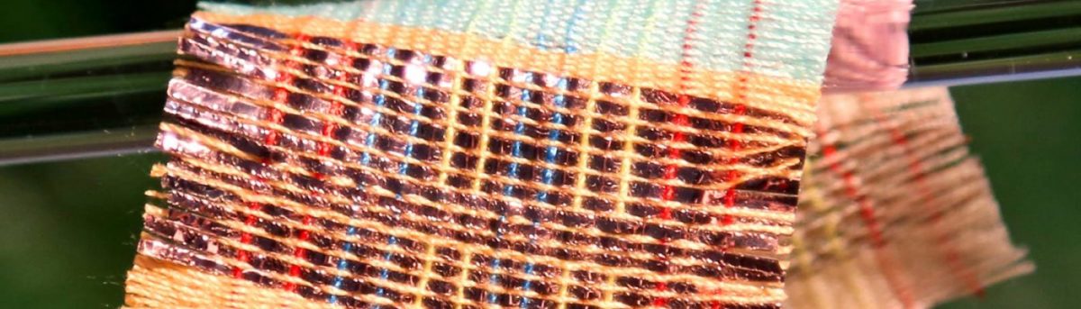 To make the fabric, Wang’s team used a commercial textile machine to weave together solar cells constructed from lightweight polymer fibers with fiber-based triboelectric nanogenerators.