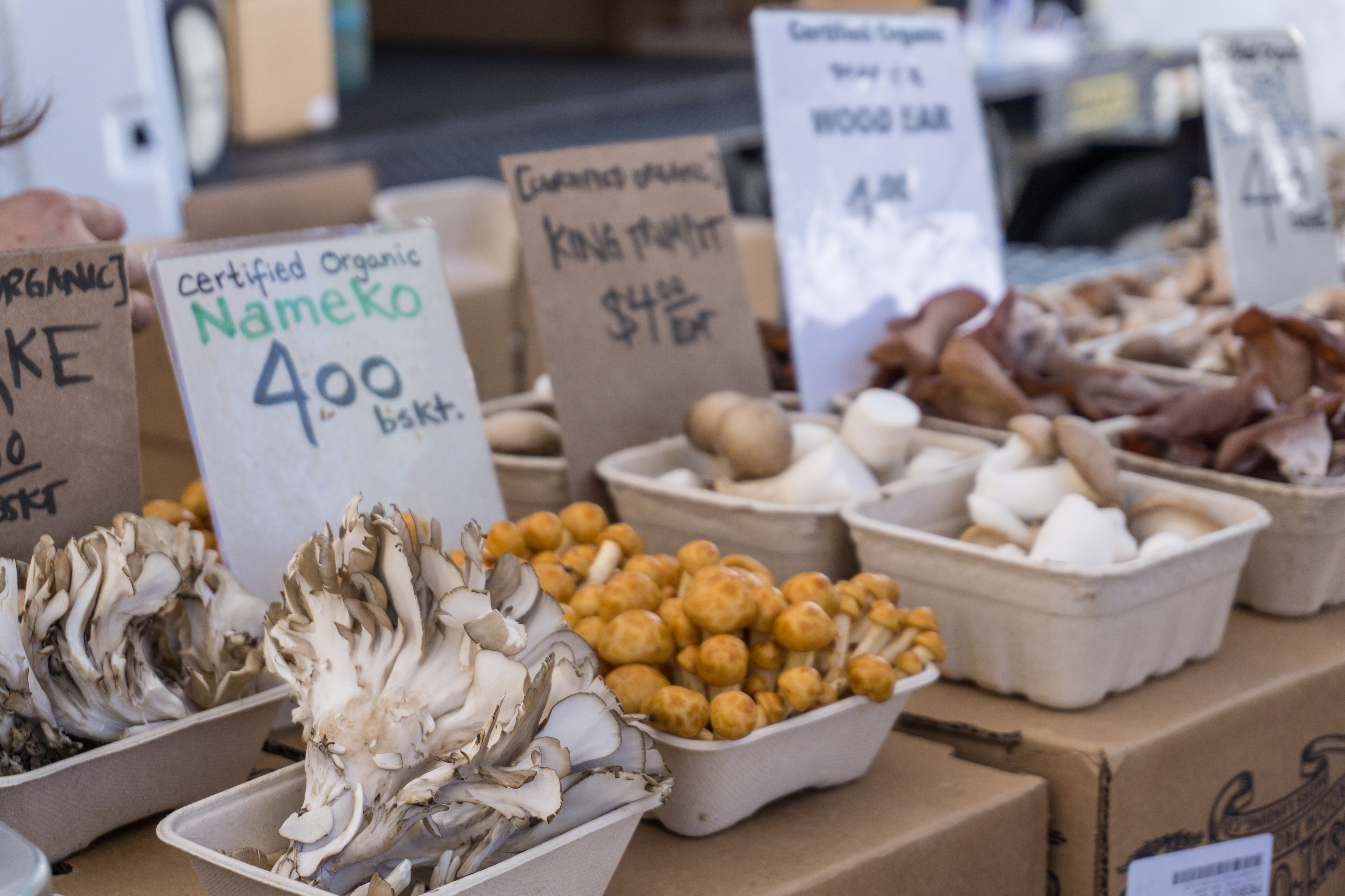 She spears a pickled mushroom on a toothpick—her “magic mushrooms,” she calls them, made with organic mushrooms she found at Far West Fungi, another vendor. It’s vaguely sour and a little smoky, a distant relative of the pungent, better-known cabbage kimchi.