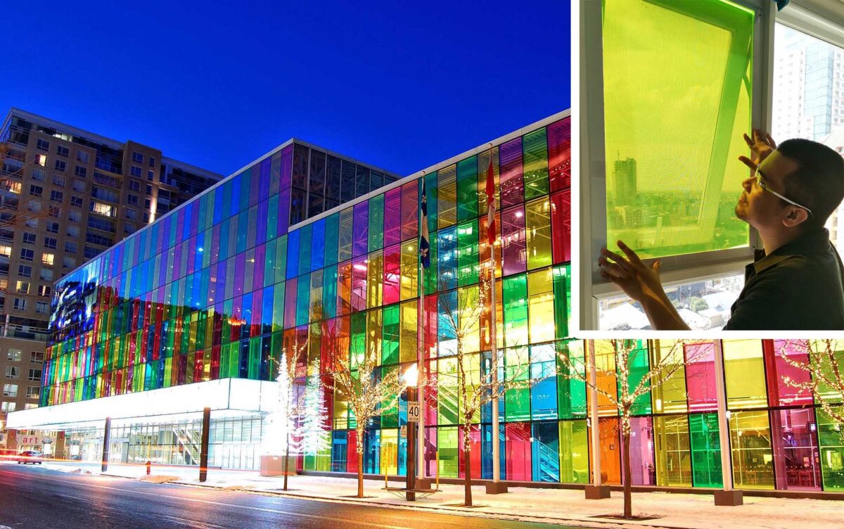 The award was given for his AuREUS system that turns waste crops into cladding, or layers of one material over another—his colorful solar panels are layered decoratively over the windows of buildings—which generates clean energy from UV light.