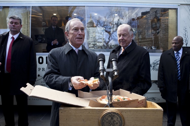Mayor Michael Bloomberg sampled the pizza at City Hall Park on Thursday, giving his slice a ringing endorsement.