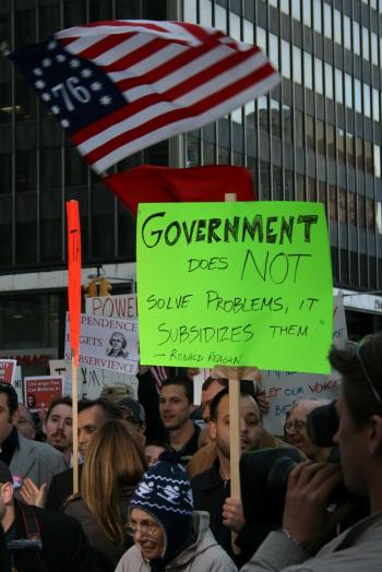“We’re here to protest fiscal irresponsibility. The legislators in D.C. and Albany, they’re not representing us correctly,” said Kellen Guida, who organized the New York City protest through his Web site, Parcbench.com. “They’re saying it’s these right-wing billionaires who are organizing these activities and providing all the money. Well, I can tell you single-handedly, that they’re not.”
