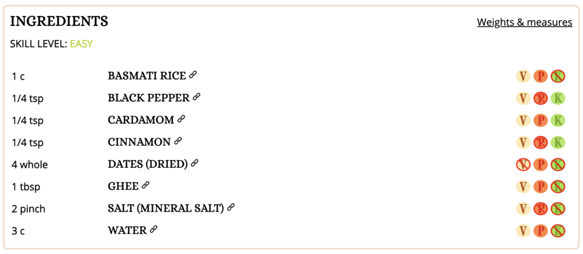 This decadent dish is very easy to digest. It’s even perfect for those recovering from illnesses or suffering from weak digestion. Sometimes, feeling rundown leaves us feeling sad. This recipe is the remedy for both! The soft, soothing nature of rice and dates will calm your belly and help you feel strong and stable. The aromatic spices—cinnamon, in particular—will tonify your heart so you feel once more like everything will turn out all right in the end.