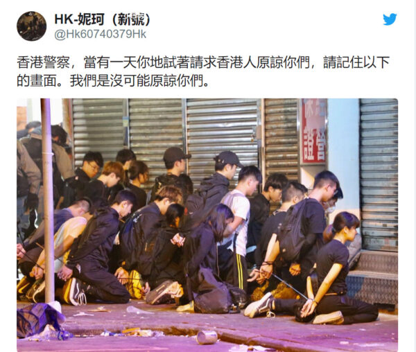 Shortly after police arrested more than 1,000 protesters at Hong Kong Polytechnic University (PolyU) and the nearby area, netizens posted videos and photos online, showing that police abused protesters inhumanely as if they were “war criminals.”