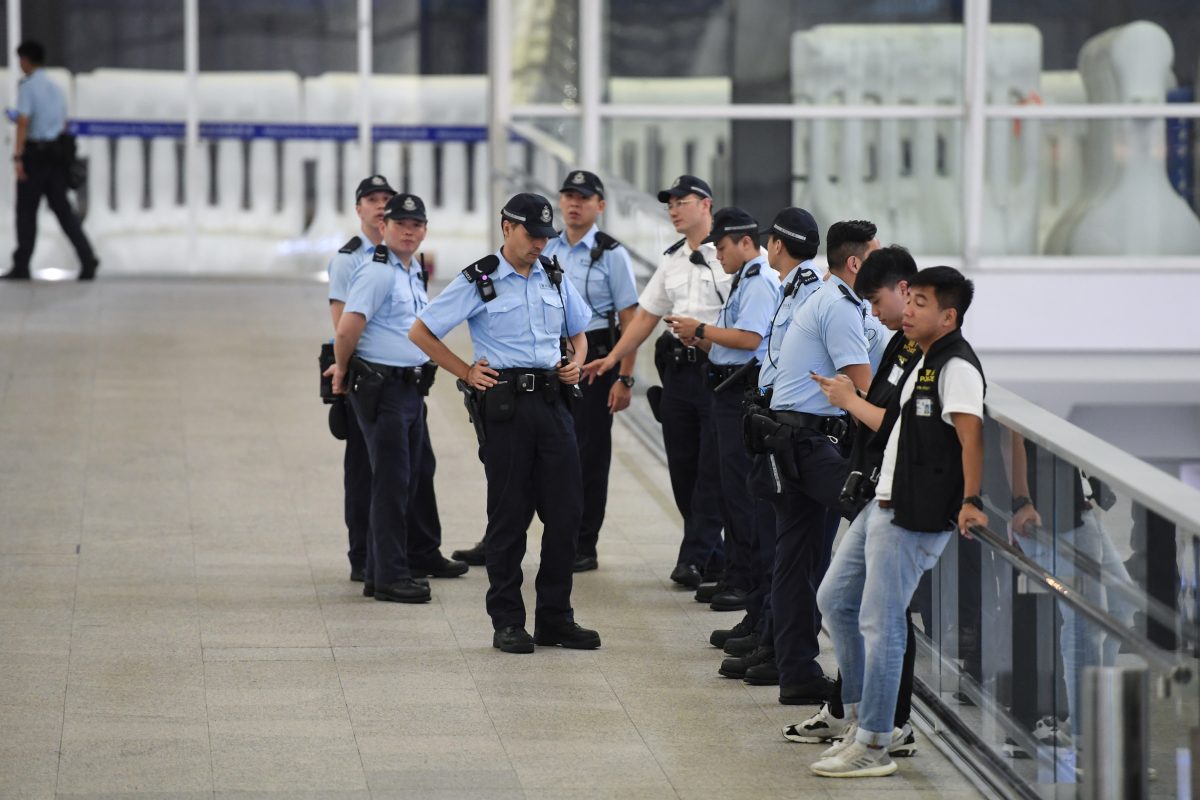 The footage was revealed by local lawmaker Lam Cheuk-Ting, of the Democratic Party of Hong Kong, at a press conference on Aug. 20. The officers were arrested later that day.