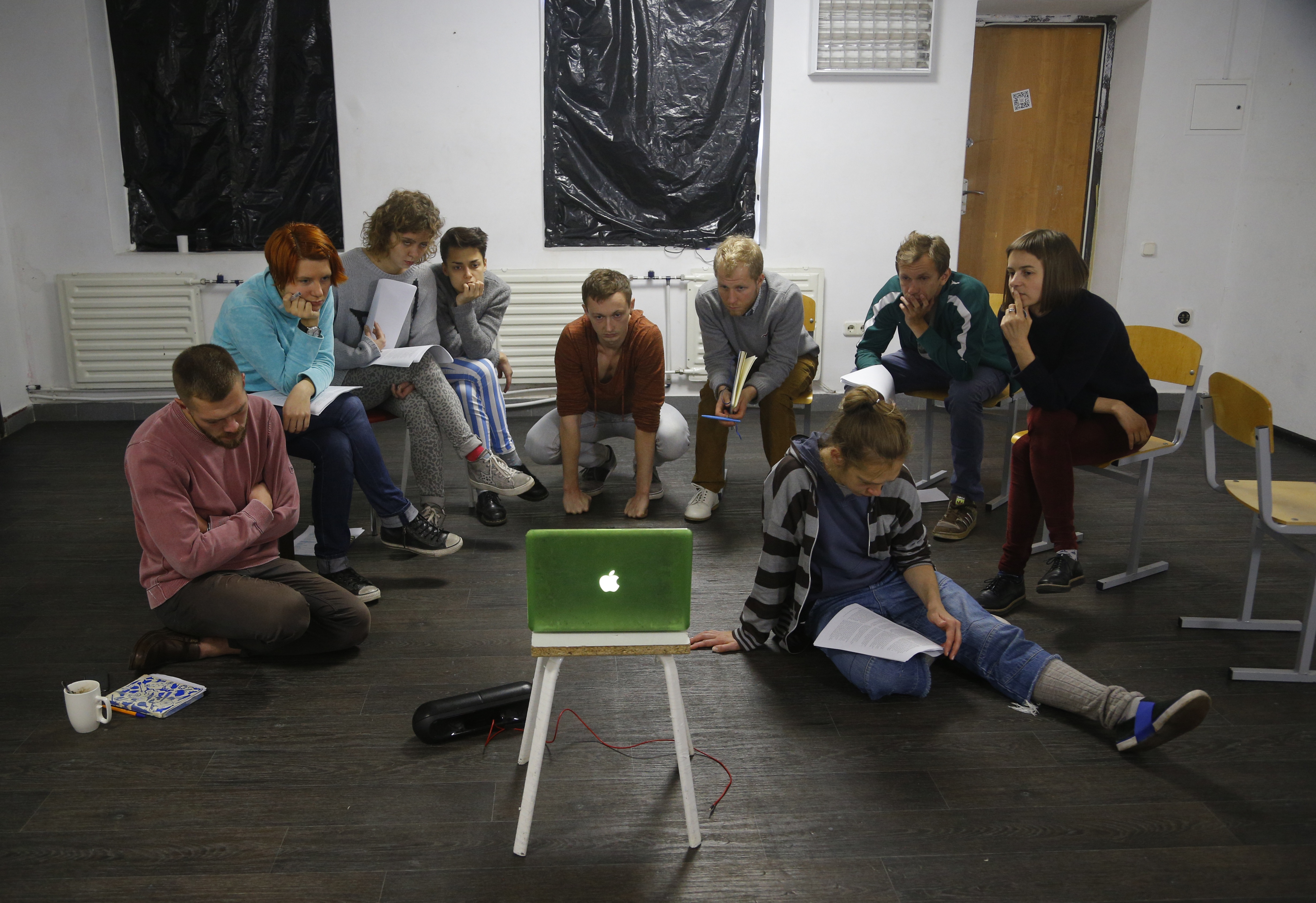 At home, however, its performances are advertised only by word of mouth. Its directors fled to Britain after a crackdown on the Belarus opposition following the 2010 presidential election. Rehearsals are now conducted via Skype.
