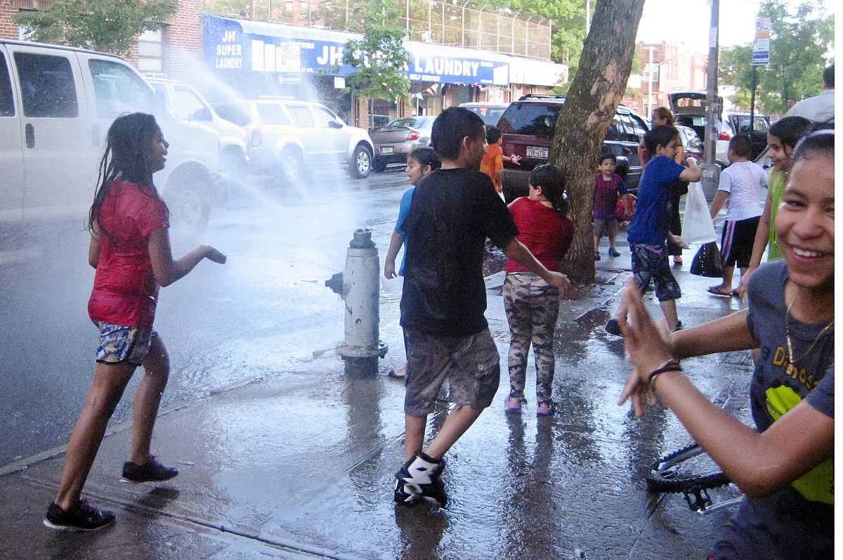 NEW YORK—Summer heat has moved into the city, yet while the adults are trying to install fans and air conditioners on June 1, the local kids in Jackson Heights, Queens, had their own idea of keeping cool.