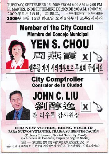 Choe’s campaign Web site says John Liu endorsed John Choe. Next to a photo of the two together, a quote from Choe also says, “It is so gratifying to have Councilman Liu's full support in my campaign to succeed him in the City Council.”
