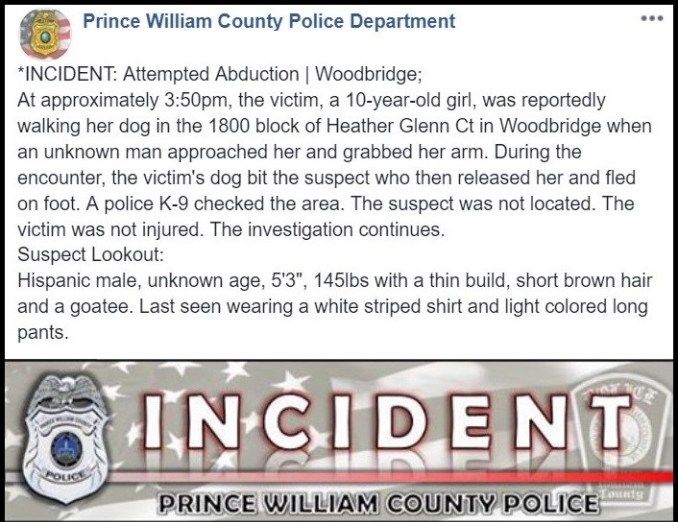 A Facebook user, writing on the Prince William County Police Department Facebook page, said that the girl was only “a little over a year old” when the incident took place. He said the girl is his niece.
