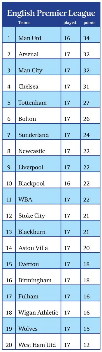“Manchester United defended very well,” Arsenal manager Arsene Wenger said on www.arsenal.com. “Manchester United played a very simple game, but they were efficient at it because they scored a goal and we didn’t create enough chances.”