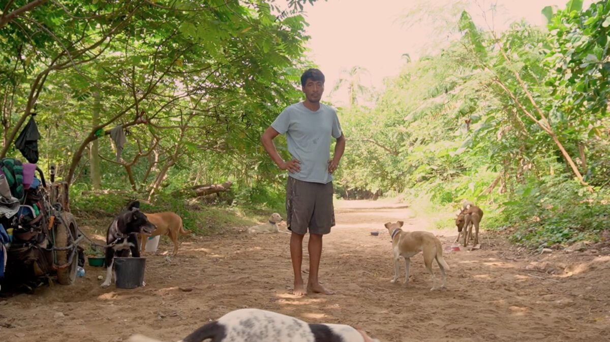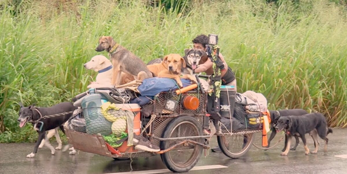 Edgardo’s caravan is centered around a modified tricycle that carries his meager possessions, food and medicine for the dogs, and some of the dogs that were injured and had difficulty walking—such as the three-legged “Sin Pata” (Pawless), who he found near the Guatemalan border; Enzo, whose leg was infected and had to be amputated; and Patuleco, who was born without knees and has dysplasia.