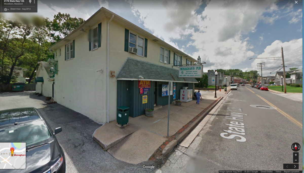 The stickup happened at Monaghan’s Pub in Baltimore, right across the street from a Baltimore County Police station.