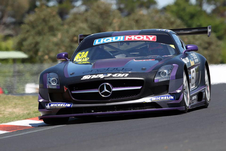 After half a day of hard racing over Australia’s most picturesque road course, Bernd Schneider, Alex Roloff, and Thomas Jaeger in the No. 36 Erebus Mercedes SLS AMG took the checkered flag to win the 2013 Bathurst 12 Hours Saturday.