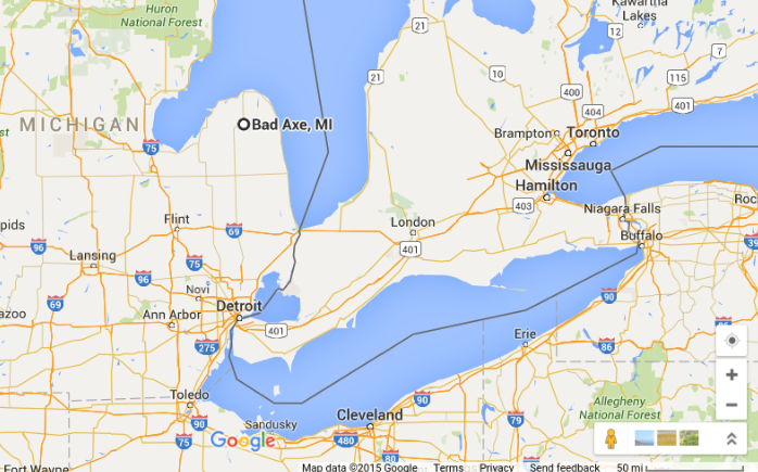 I’m really puzzled by this. Bad Axe is a really small town in the Thumb. The only reason to go there is for the blacksmith shop. It’s not even accessible by water.