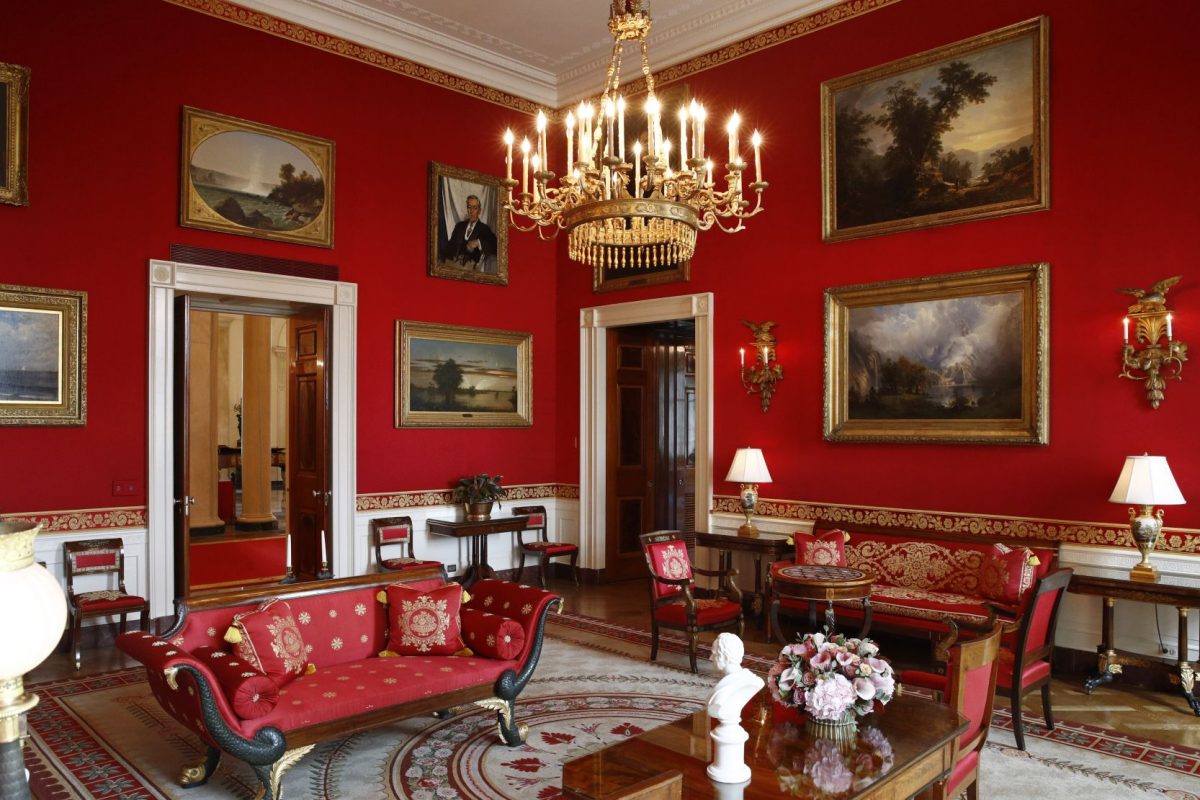 AP noted that there is the new fabric in the Red Room, new draperies in the Green Room, and newly restored furniture in the Blue Room.