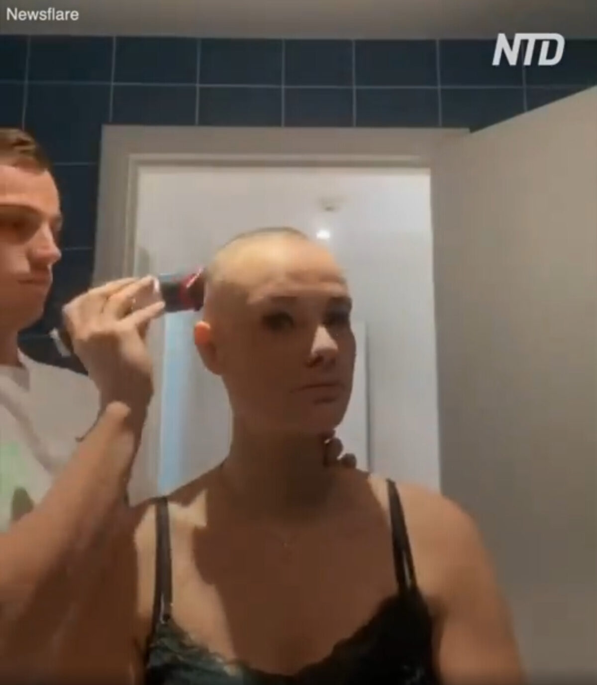 The moving clip shows Barilaro seated as her boyfriend starts to carefully shave her head with a neighbor’s clipper. After thoroughly working on removing the strands of her hair, Fabre doesn’t put the clipper down but turns it toward his own head and begins to shave it.